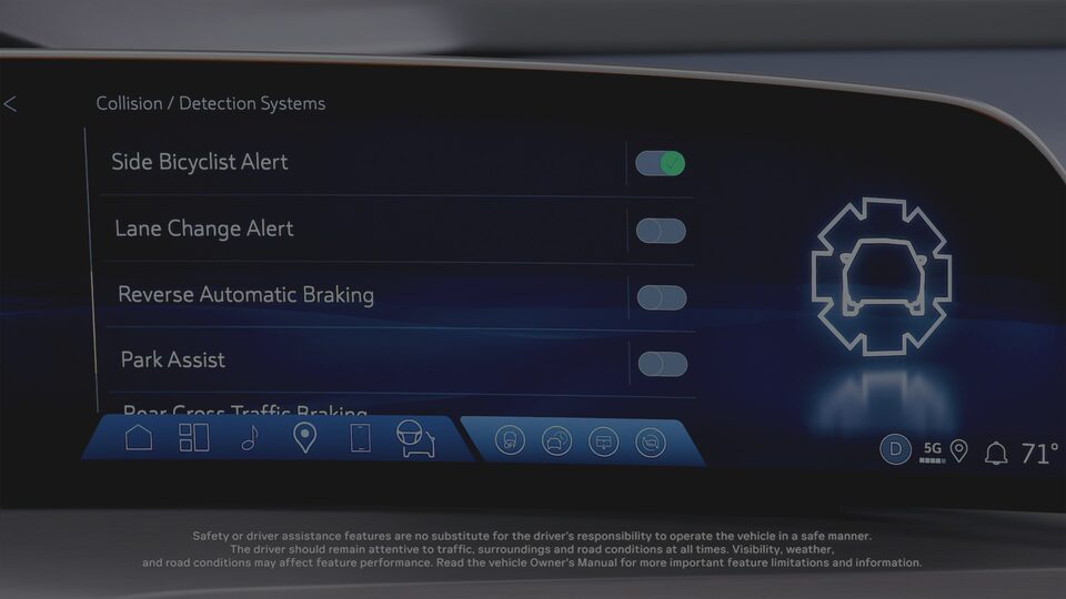 #/#Safety or driver assistance features are no substitute for the driver’s responsibility to operate the vehicle in a safe manner. The driver should remain attentive to traffic, surroundings and road conditions at all times. Visibility, weather and road conditions may affect feature performance. Read the vehicle Owner’s Manual for more important feature limitations and information.
